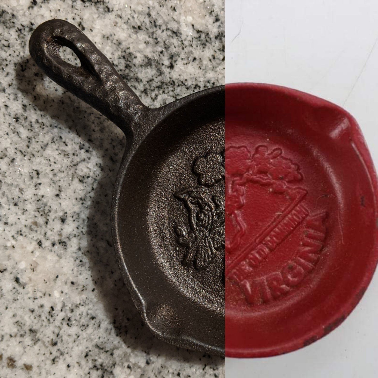 Cleaning cast iron will sometimes reveal issues that are unseen while still dirty. Examples include: hairline cracks, staining, pitting, tool/grind marks, and fire damage. When issues are discovered during cleaning we will contact you immediately to discuss whether or not to continue. Since these issues are hidden we cannot be held responsible for discovered damage. If issues are discovered at any point in the cleaning process and seasoning is not performed, there will be no charges. If you choose to continue on with the remainder of cleaning and seasoning all charges will be payable.